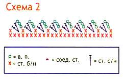 Збірка: Виконати шви. Рукави та нижній край обв'язати ниткою білого кольору оздобленням за схемою 2. Виріз горловини обв'язати ниткою помаранчевого кольору 2 р. ст. б/н. Готовий виріб зволожити і дати йому висохнути.