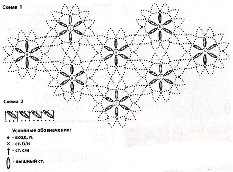 В'яжіть мотиви за схемою 1, з'єднуючи їх у трикутне полотно в процесі в'язання останнього ряду. ст. б/н.
